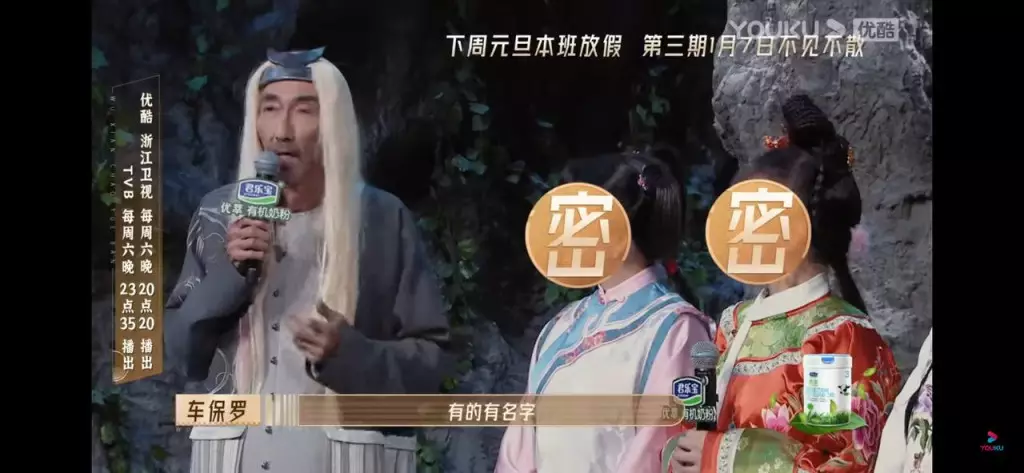 而與此同時,預告片上可看見車保羅以《鹿鼎記》中的「胖頭陀」角色造型亮相,畫面還寫上「98版《鹿鼎記》老友重聚」,當中被「?」遮臉的四名神秘嘉賓,有網民就推斷分別是飾演雙兒的陳少霞、飾演沐劍屏的鄺文㫬、飾演建寧公主的劉玉翠(現名:劉喬方)以及飾演阿珂的梁小冰。