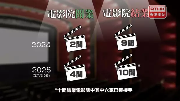 根據香港票房有限公司數據,去年票房最高的港產片,累積票房達1億5800多萬,但今年截至10月中,仍未有港產片票房能夠突破1400萬元。政府早前回覆立法會指,去年至今年7月,共有19間戲院結業,獲接手及新開業的有12間。現時全港有54間戲院,約4萬個座位,較5年前減少約3千個。