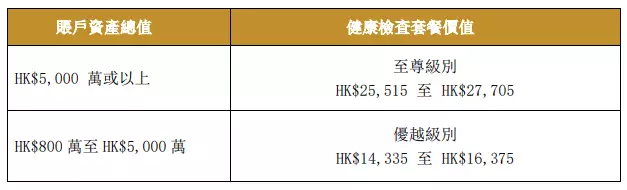 客戶於2023年期間全新開立工銀亞洲私人銀行賬戶,且賬戶資產總值在年內任何時間達HK$800萬或以上,可享港怡醫院免費健康檢查套餐乙次。