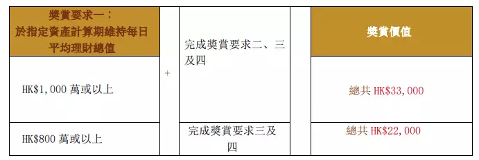 獎賞要求二︰完成以下任何一項或多項合資格交易累計達港幣$5,000,000或以上(只適用於上述額外獎賞)