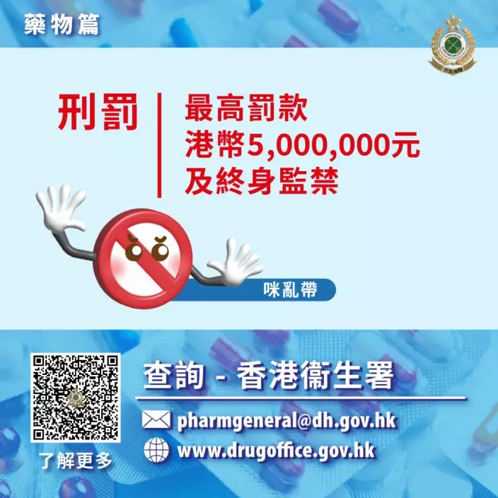 香港與內地最快周日通關,海關4日提醒出入境人士,除了在個人隨身行李內攜帶藥物以供合理自用外,攜帶受管制藥物入境或出境,需要出示由衞生署簽發的許可證;而有關藥物被列為危險藥物及抗生素等,須獲醫生處方才可攜帶過關,否則將可能被檢控,有關物品亦可能被檢取,最高罰款500萬元及終身監禁。