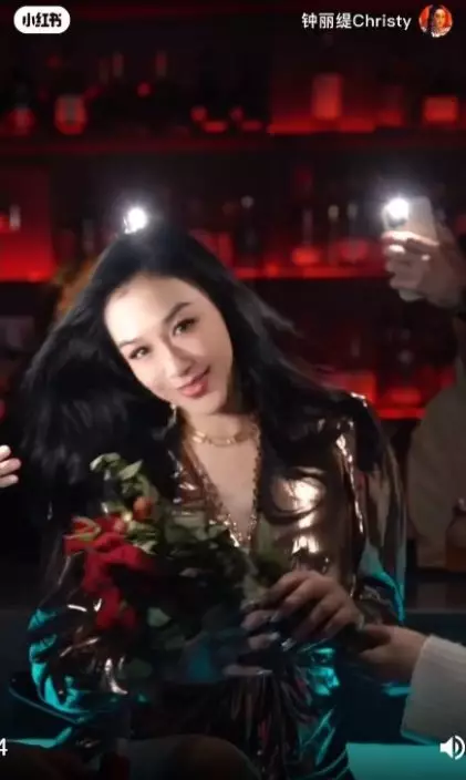 最近鍾麗緹的影片中長髮飄逸,穿上長褲及微Deep V上衣,妝容都顯得比以往自然。