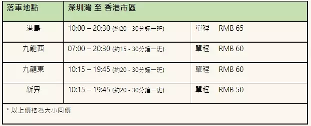 而香港往返深圳灣口岸的班次具體安排、路線資料及售票詳請如下: