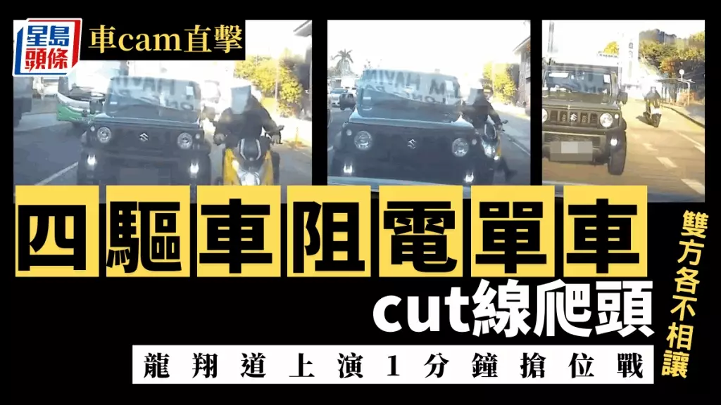 路上零意外當然最好,但仍需靠所有道路使用者合作。6日網上流傳3段「車cam」片段,一輛鈴木四驅車疑阻電單車切線,引發一場馬路搶位戰,多次互相爬頭爭位「鬥車」,其間更一度發生碰撞,險象橫生,無視雙白線或其他車輛安全。