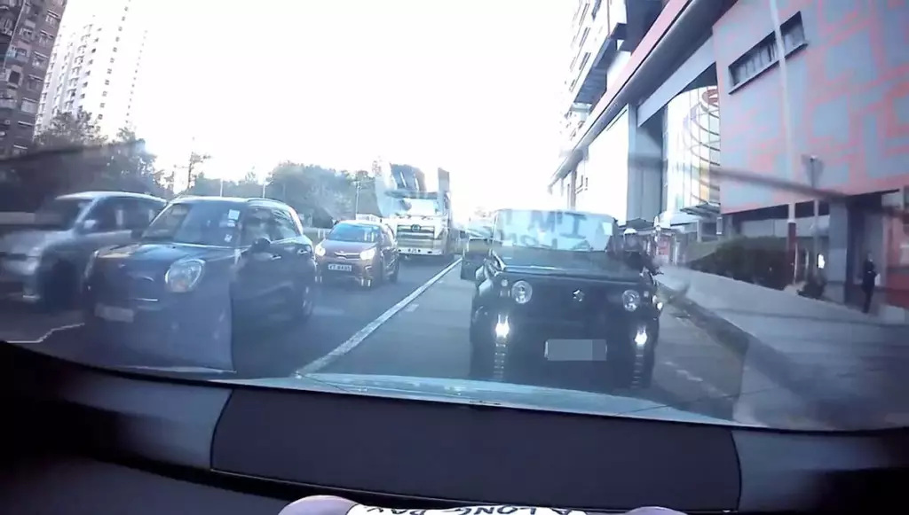 有關片段未有顯示事發時間,當時該輛鈴木四驅車沿龍翔道行駛,至黃大仙中心對開時,一輛電單車駛至企圖切線,四驅車未有相讓,反而踩油向前阻止電單車切線。電單車司機未有放棄,再接再勵緊貼四驅車,希望可以切線超車,未幾兩車更發生碰撞,險象橫生。