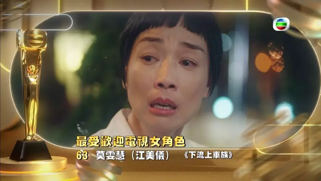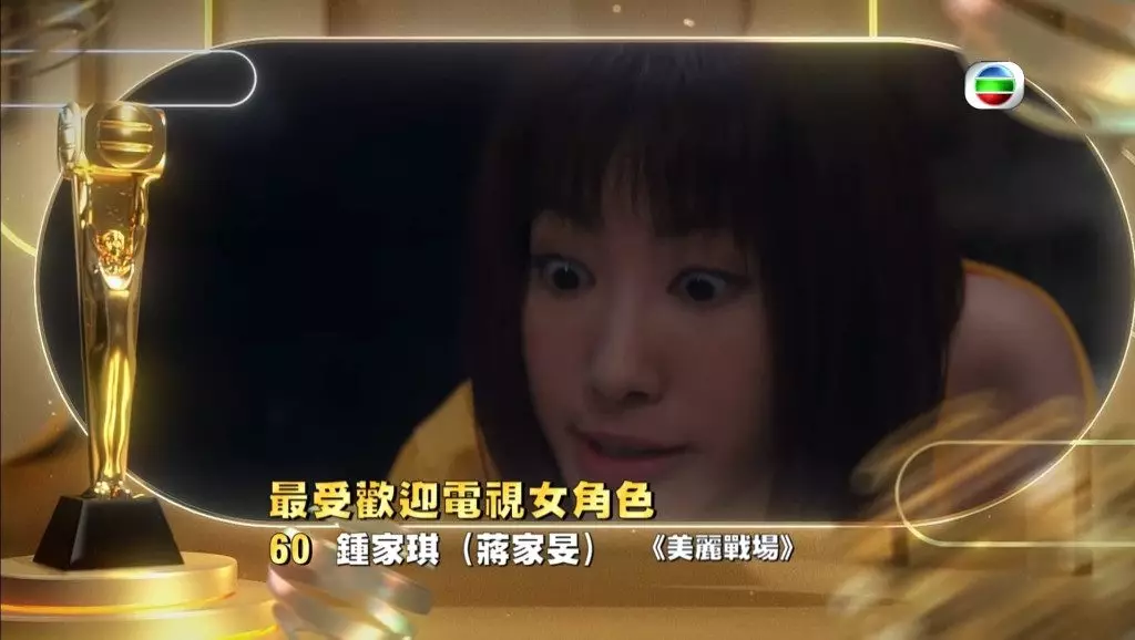 但樊亦敏憑《愛.回家之開心速遞》的「三太」白天娥亦不容忽視緒,角色好入屋;龔嘉欣在《十八年後的終極告白2.0》飾演沈越,喪女一幕的層次爆喊,令人難忘。而蔣家旻在《美麗戰場》飾演的鍾家琪,反骨程度令觀眾咬牙切齒。