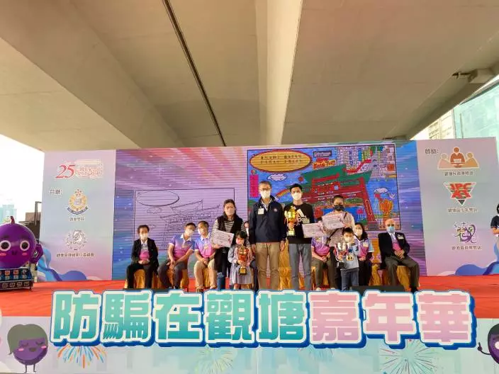 另外,較早前觀塘警區聯同觀塘區撲滅罪行委員會、觀塘區學校聯會及觀塘區家長教師會聯會合辦慶祝香港回歸祖國25周年–齊守法,共守護「家在觀塘」填色及口號設計比賽,目的為提升區內市民守法意識,共建美好家園。該次比賽共有超過3,500名參賽者,頒獎禮同時在嘉年華中舉行,藉此呼籲在場人士密切留意並踴躍參加本區將籌辧以其他滅罪為主題的比賽。