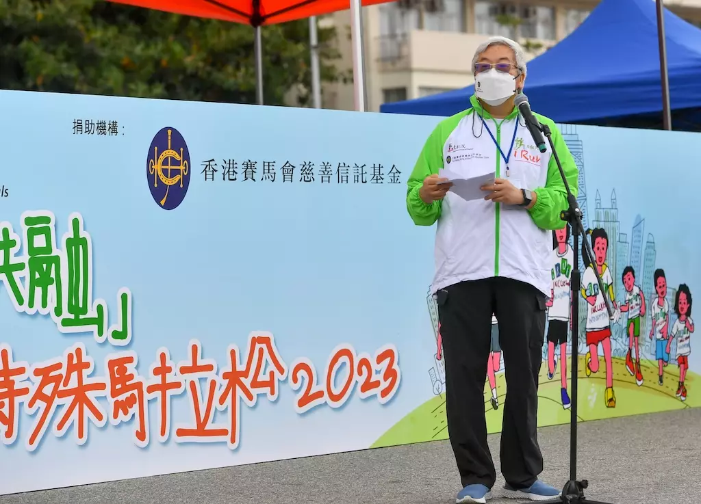馬會副主席李家祥表示馬會第12年支持東華三院「奔向共融」 — 香港賽馬會特殊馬拉松,鼓勵不同能力人士多做運動,推廣健康生活,同時宣揚傷健共融。