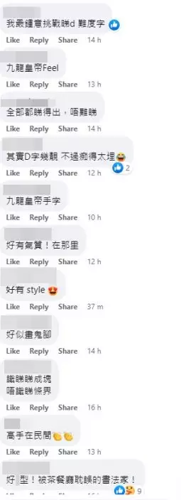 網民大都欣賞餐牌內的書法,指「好有氣質!」、「好有style」、「高手在民間」、「被茶餐廳耽誤的書法家!」、「筆格精奇」、「藝術感好重」、「係藝術」、「好靚手字」。有網民還指「手字研究過,苦練過,真係要畀個like果位朋友,但睇得有啲辛苦,繁忙時段啲客同伙記可能會炆」。