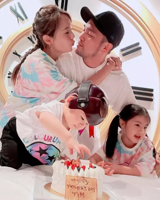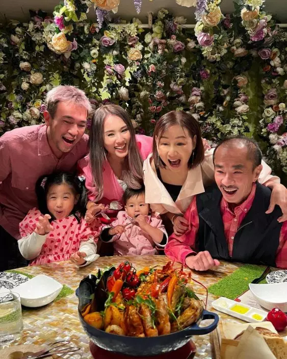 楊洛婷近日分享多張一家人食盆菜靚相,爸爸正面好有型!