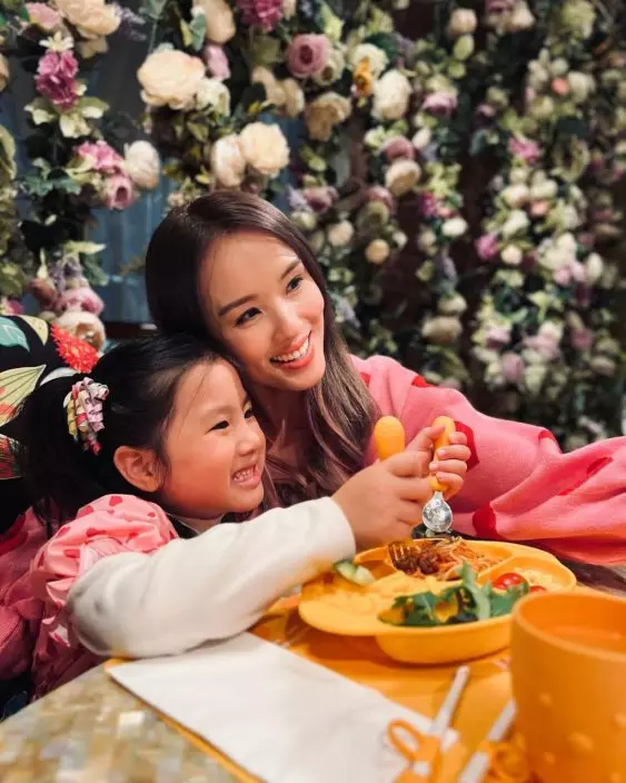 楊洛婷近日分享多張一家人食盆菜靚相。