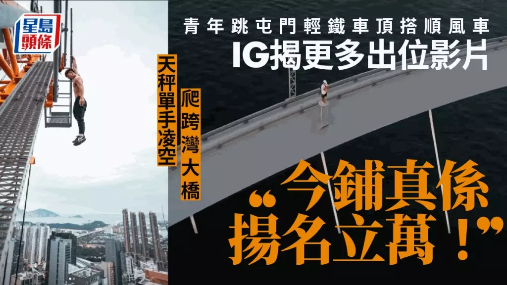 另外,上月11日才告開通的將軍澳跨灣大橋,涉案青年曾在未開放的情況下進入,偕同其他朋友沿蝴蝶橋鋼架爬至頂部,站在只有一個方格大小的鋼架上拍攝,危機四伏。