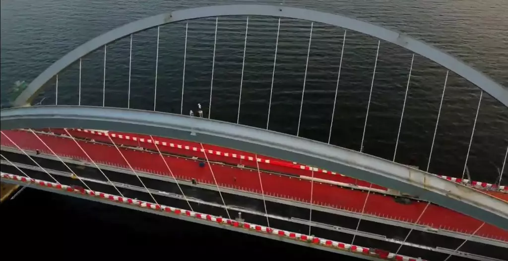 將軍澳跨灣大橋未開通前,涉事青年曾爬上蝴蝶橋鋼架頂上拍攝。(IG影片)