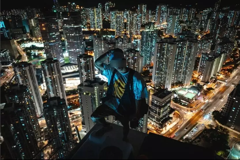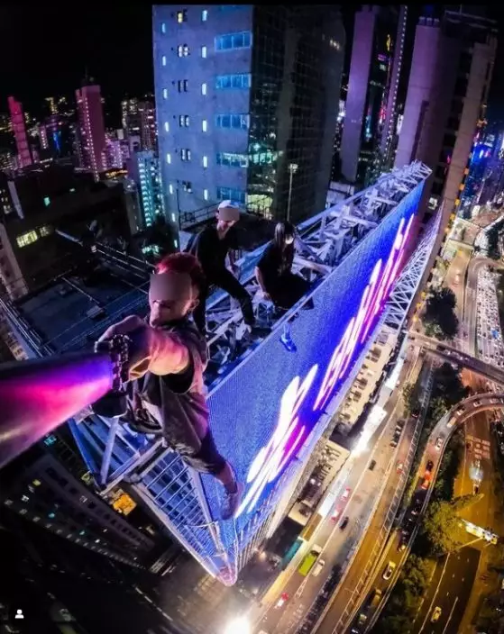 涉事青年不時爬上大廈天台或廣告牌上自拍以炫耀身手。(IG圖片)