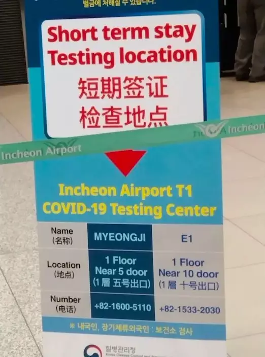 採集結束後,徐風跟隨隊伍排隊做核酸。工作人員舉著寫有「從中國來的旅客請往這邊走」的牌子進行指引。只要是從中國過來的,無論是中國人還是外國人,甚至是韓國本地人,也要一樣排隊做核酸。