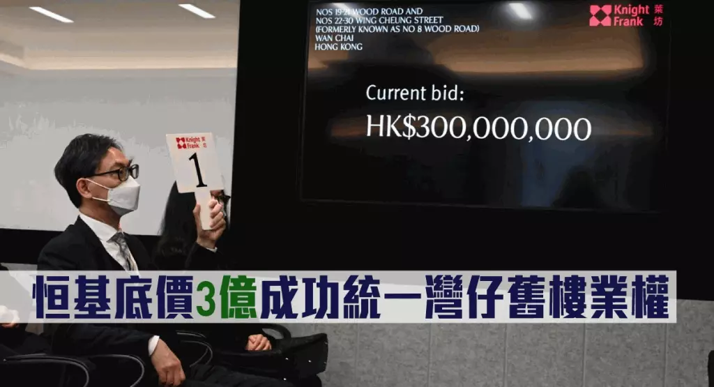 恒基積極擴充灣仔版圖發展,該公司併購的灣仔活道19至21號及永祥街22至30號舊樓,今日舉行公開拍賣,結果由手持「1號牌」的恒基執行董事黃浩明,在無對手下以底價3億投得,成功統一業權發展,是該公司今年首個透過強拍途徑以購的項目。而該項目日後將與毗鄰項目合併發展,可建總樓面增至逾7萬方呎。