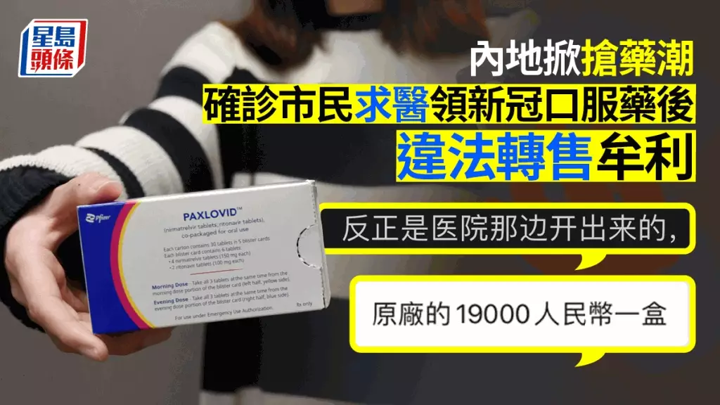 近期內地確診人數暴增,掀起藥物搶購潮,當中本港可供註冊醫生處方的兩款美國新冠口服藥物被視為長者「救命藥」,炒價動輒逾萬元人民幣,部分港人覷見商機,確診求醫免費領藥後,通過社交媒體兜售,有港人因擔心內地的年長親人染疫猝死,不惜花費11000元購入,打算日內攜帶返鄉。醫管局強調,兩款新冠口服藥屬處方藥,只可由註冊醫生處方,確診病人取藥後轉售即屬違法,病人應按醫生指示服用,切勿轉交或轉售予他人。