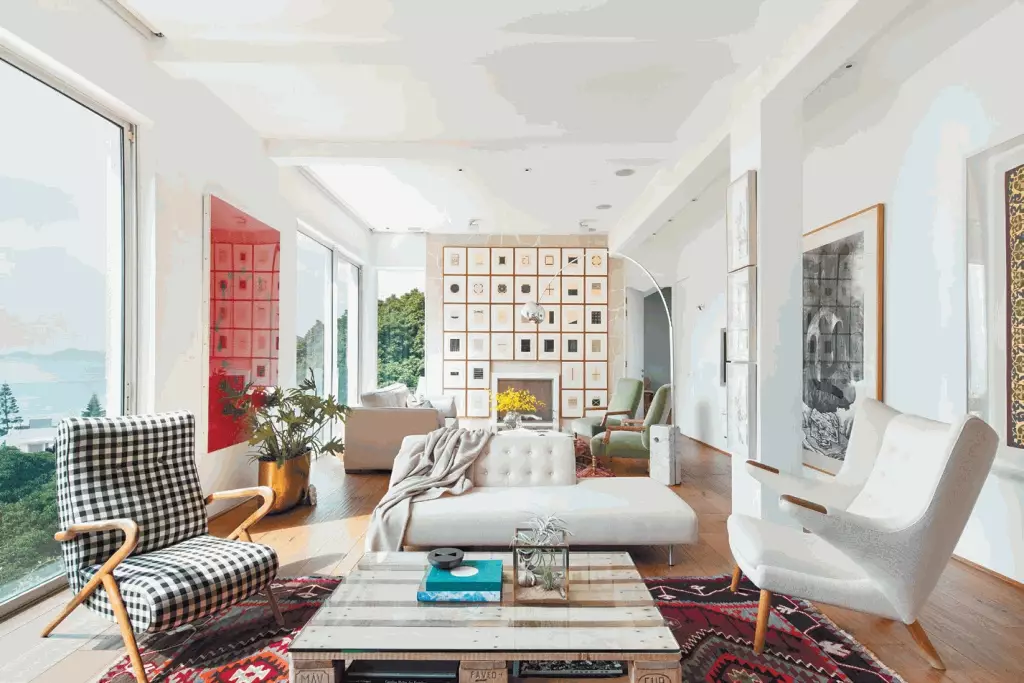放盤樓底高曠,加上採用白色牆身,令室內空間更具空間感。