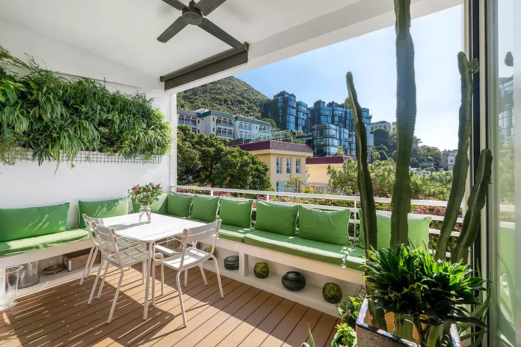 有蓋露台種有多款綠植,將淺水灣的自然綠意迎入家居。