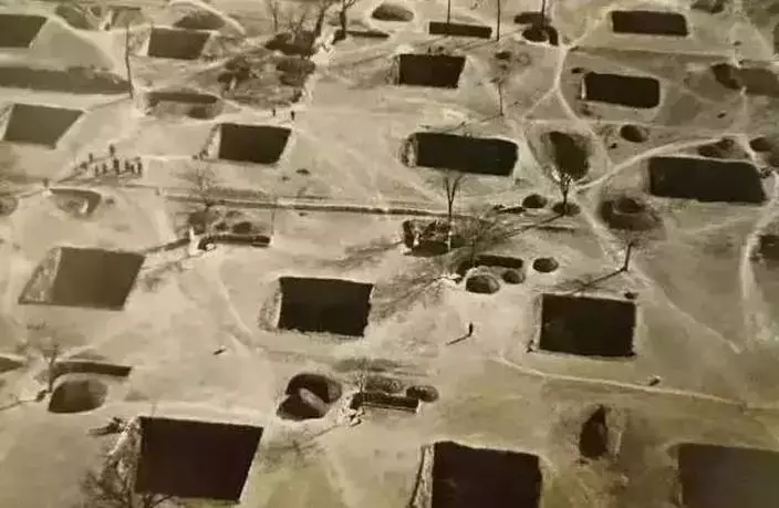 地坑院也叫天井院、地坑院,當地人稱之為「地窯」。據考證,地坑院距今已有2000年的歷史,是黃土高原地區上獨具特色的民居,亦是人類「穴居」發展史演變的實物見證,因為它們正是建造在中國古代穴居人「仰韶文化」的遺址一帶。早在1930年代,德國一名機師駕駛飛機,將地坑院這堆有趣的人文景觀航拍下來: