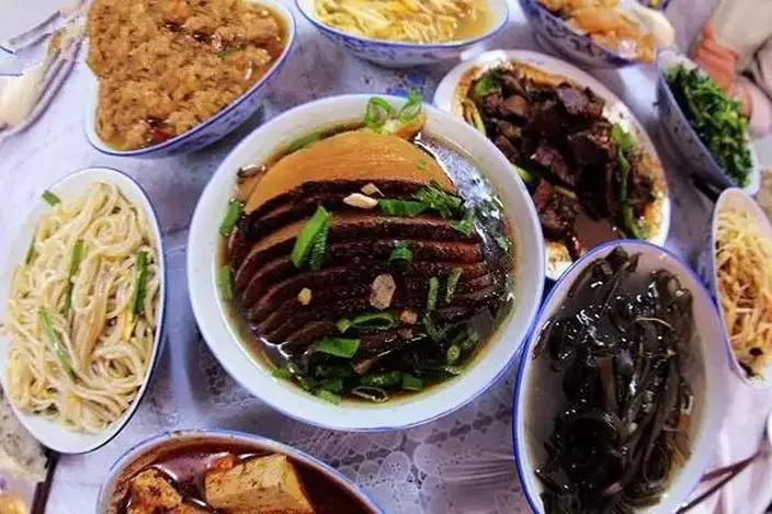 陝縣地坑院的傳統特色美食是「十大碗」,包括:小酥肉、紅燒肉、涼拌紅蘿蔔絲、海帶、紅豆腐、肉燴菜、黃花菜、燴炸豆腐、涼拌豆芽、涼拌粉條等。相傳八國聯軍攻入北京,慈禧太后逃難途經此地時,當地農民就為她烹飪過「十大碗」,老佛爺食完讚不絕口,令這種菜色名揚四方。