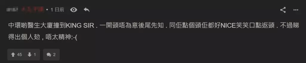 有網民喺好多醫生睇嘅大廈遇到King Sir鍾景輝。