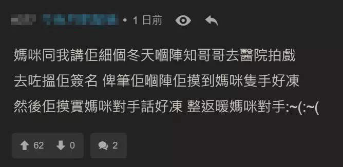 有網民的媽媽是張國榮的Fans,稱曾被張國榮暖手。