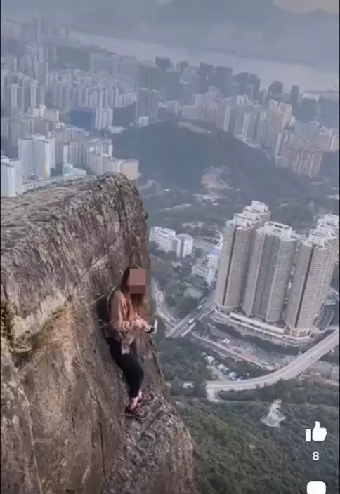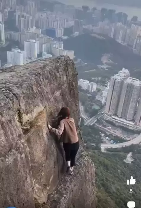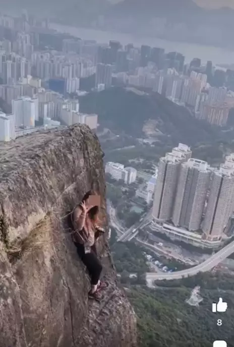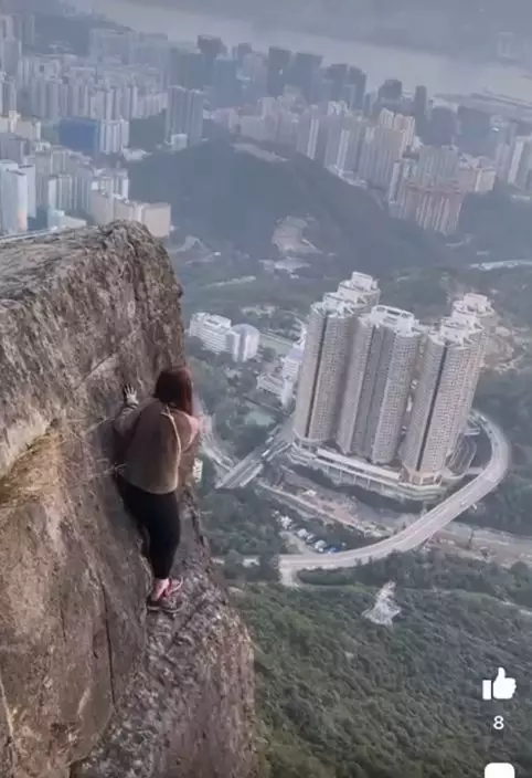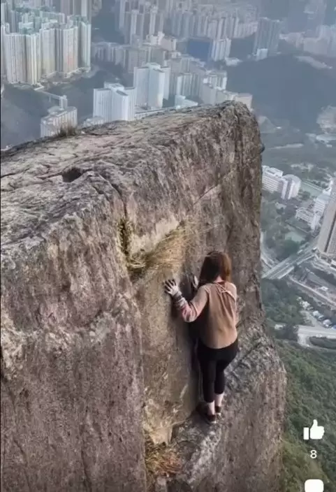 港女零保護裝備徒手攀自殺崖打卡 網民狠批「搵命博」