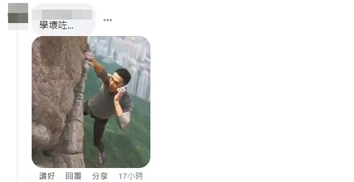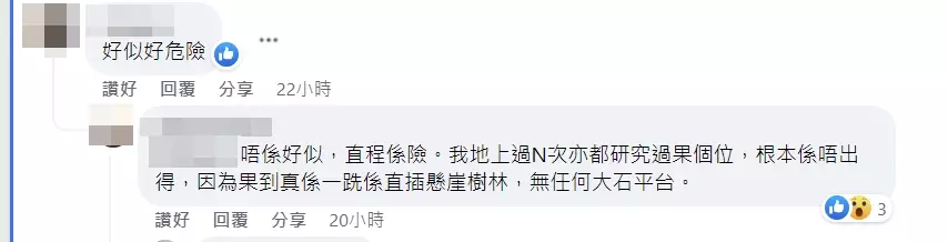 有人指,「相信個女仔對落下面一定有平地,唔會係崖邊」。FB截圖