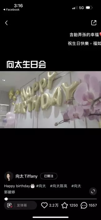 向太早前分享日前舉行的64歲生日會影片。