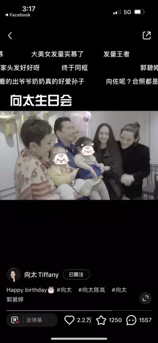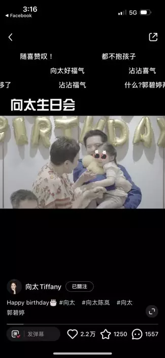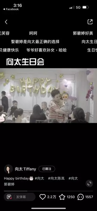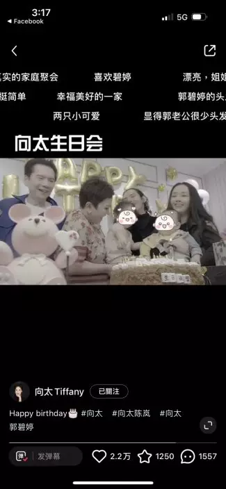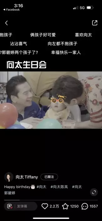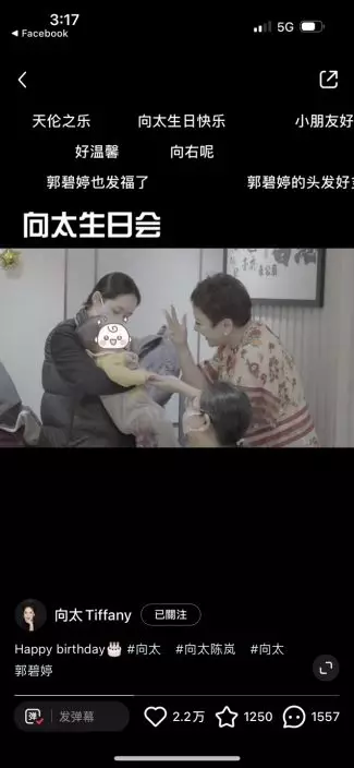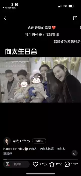 影片可見,向太生日會現場充滿童趣,現場工作人員用送餐車推出至少五個蛋糕,向太抱著孫兒滿場飛相當興奮。不過最受網民矚目的當然是向佐自去年底被內地媒體報道指偷食後,他與太太郭碧婷多次傳婚變,日前郭碧婷更unfollow向佐IG,令婚變傳聞疑幻似真。不過向佐在影片中亦展示出慈父一面,不停逗孩子玩一臉童真,但影片卻未見他與郭碧婷互動,再度成為網民熱話。