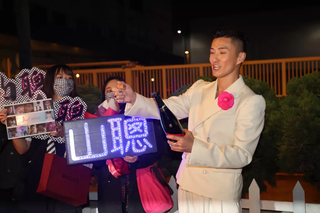 陳山聰開香檳慶祝。