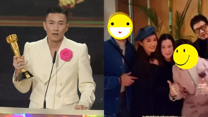 收到眾好友的心意,陳山聰亦好認做影相留念,穿上粉色西裝的他,將頭髮梳起打扮華麗現身,沒想到他側頭拍攝時,竟然意外與41歲好友袁偉豪有幾分相似。而袁偉豪的太太張寶兒在社交網亦轉發大合照並留言:「終於有機會齊聚恭喜陳山O榮獲視帝!」陳山聰開心回應:「多謝家嫂!」而陳自瑤也有留言祝賀。