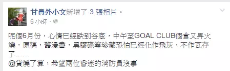 漫畫家甘小文,亦有租用上址貨倉,放置其畫稿及珍藏漫畫。他傍晚時在facebook留言,「呢個6月份,心情已經跌到谷底,中午至GOAL CLUB個倉又畀火燒,原稿,舊漫畫,黑膠碟等珍藏恐怕已經化作飛灰,不作瓦存了……@貨燒了算,希望兩位昏迷的消防員沒事」。