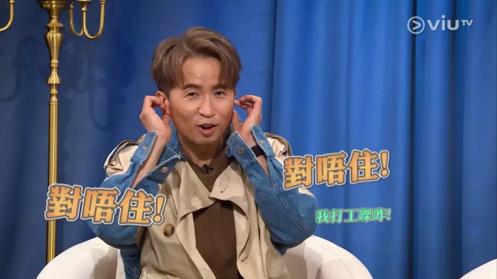當奴就扭住耳仔幫手圓場:「對唔住,對唔住,我打工㗎咋,sorry,我哋去下個環節啦!唔該晒!」