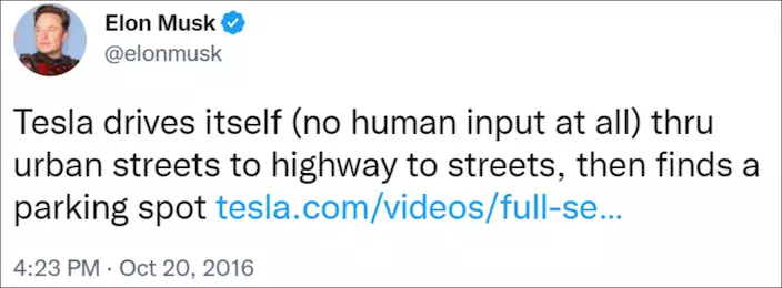 在視頻發佈後,CEO馬斯克更通過推特加以傳播。他在推文中寫道:「特斯拉可以在完全無人干預的情況下,從城市街道自動駕駛至高速公路,再返回街道,最後找到停車位自動泊車。」