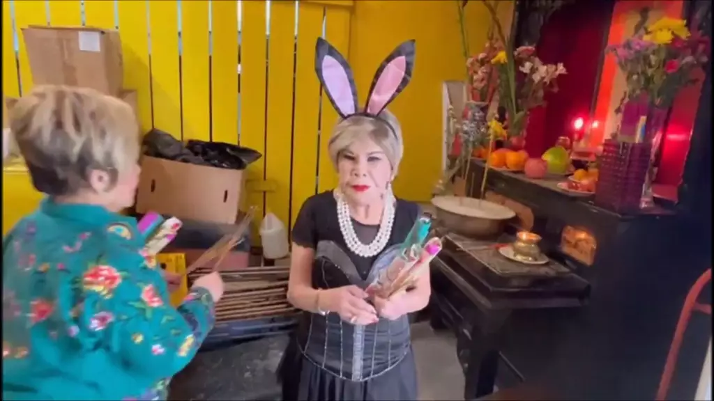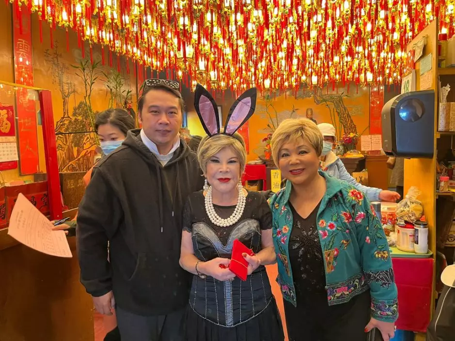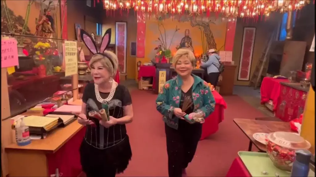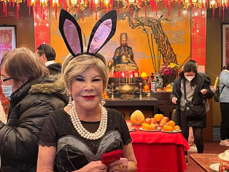 92歲黃夏蕙化身兔女郎短裙黑絲現身黃大仙 移民美國一樣誠心上香