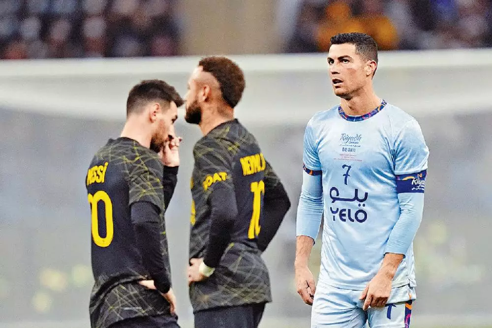 巴黎聖日耳門周四跟利雅德明星隊進行友賽,最終在C朗拿度首度於沙特阿拉伯士哥之下,聖日耳門仍贏5:4。今仗是美斯和C朗相隔兩年多後再度交手,二人賽前擁抱寒暄,賽後C朗亦在網上貼文,表示很高興在球場上和一眾老朋友相遇。