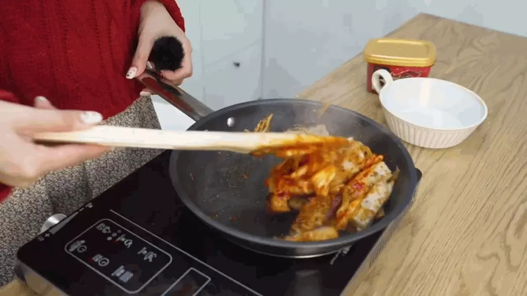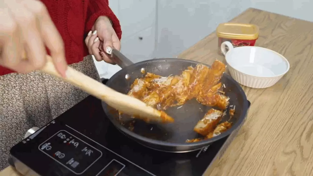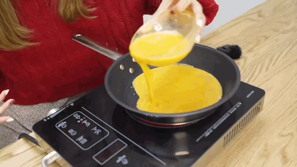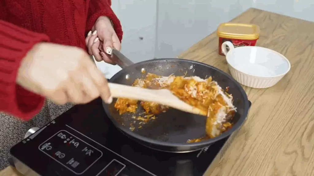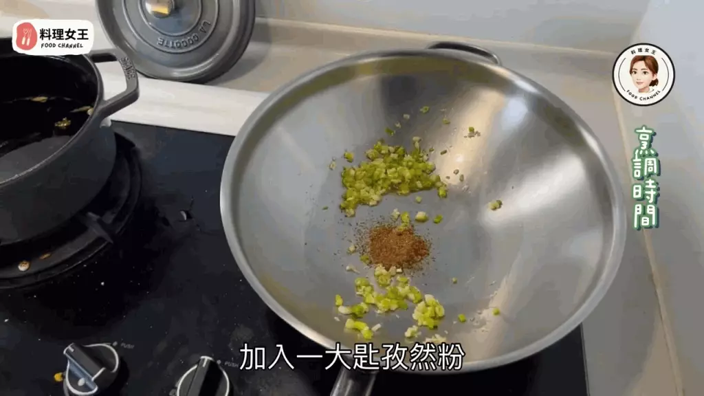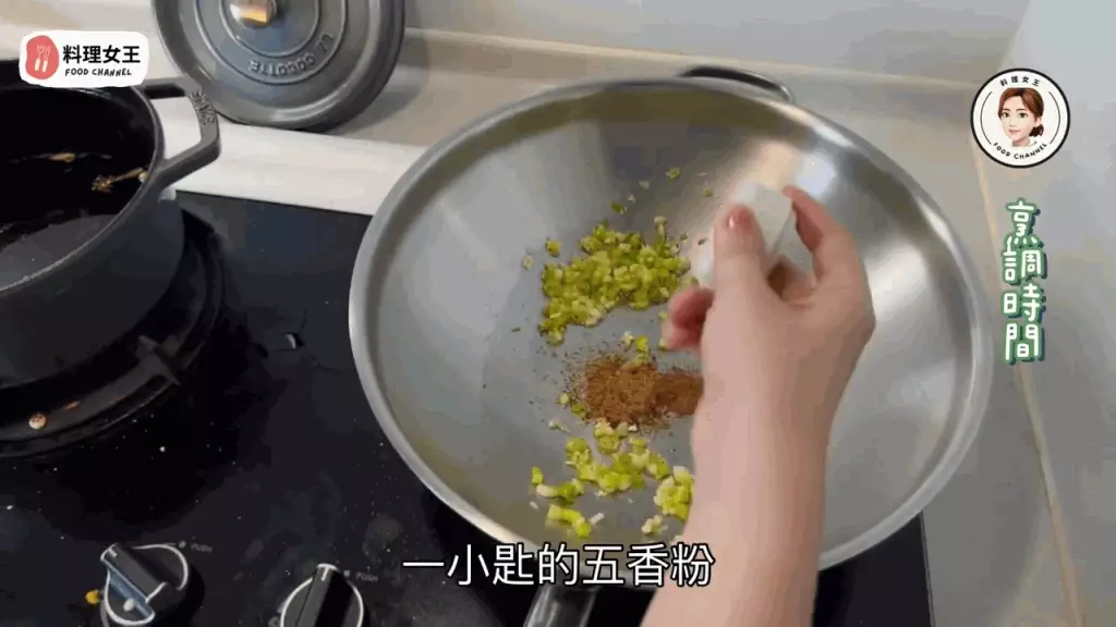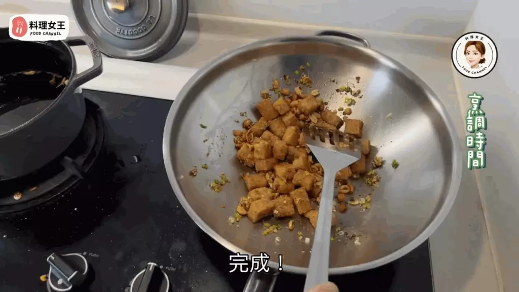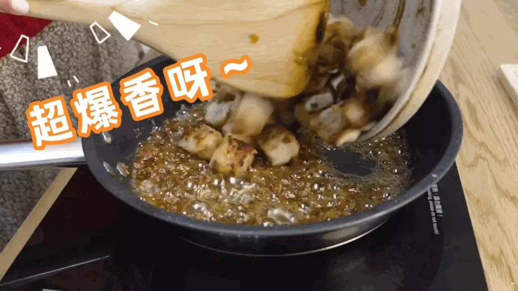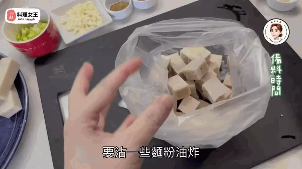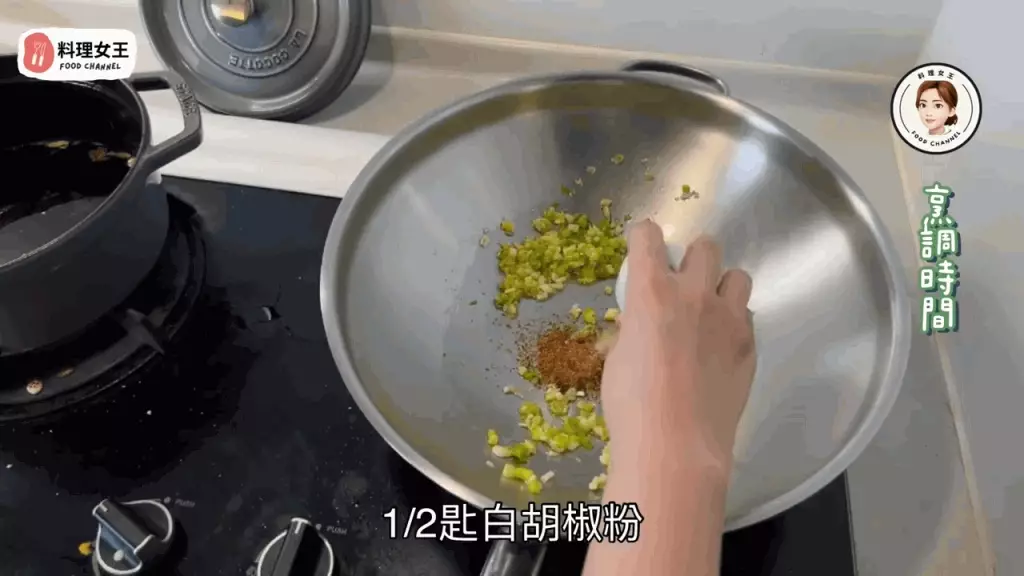 片段示範的是台式蘿蔔糕,但港式蘿蔔糕亦適合這種做法。加肉炒時,不用加油。
