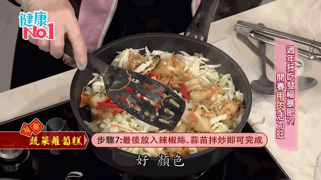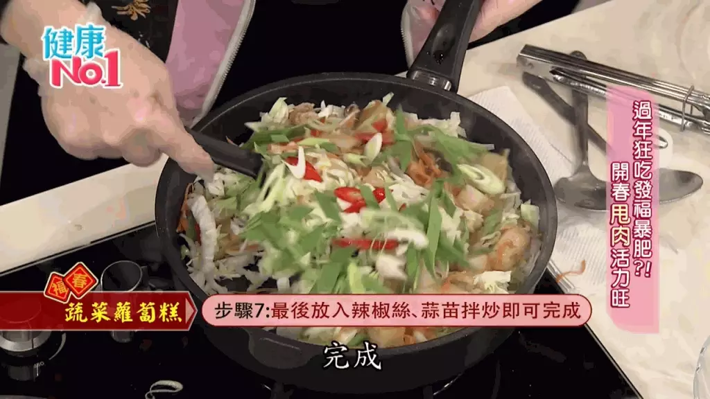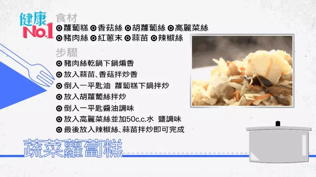 蔬菜蘿蔔糕是配蔬菜炒,是健康的食法,港式和台式蘿蔔糕都適合這種做法。