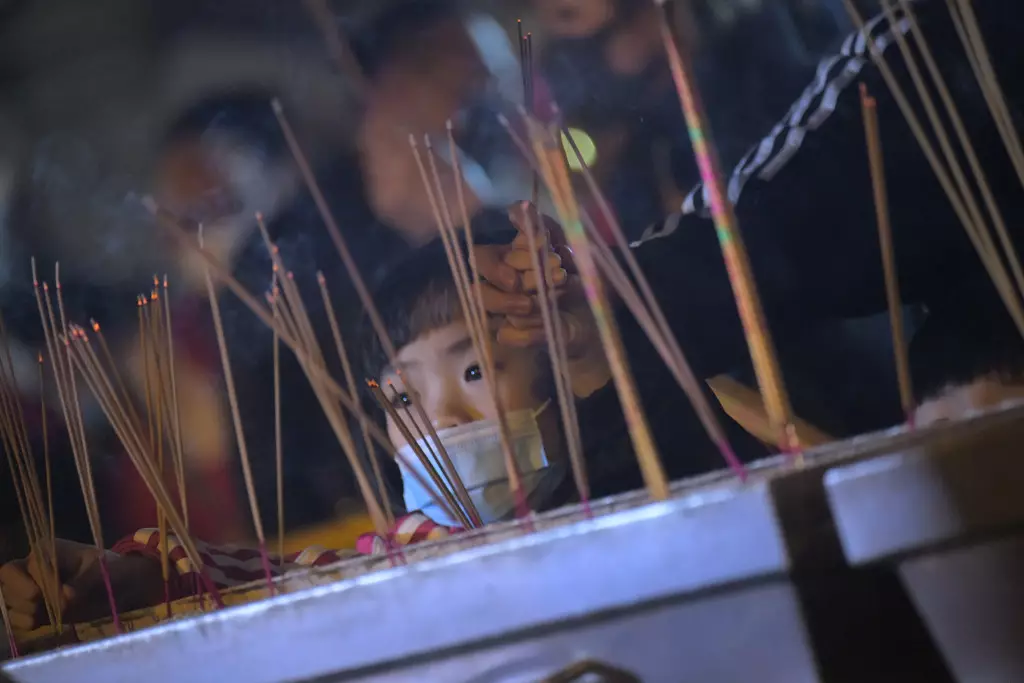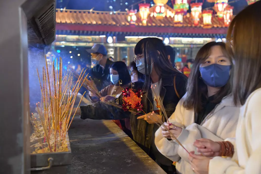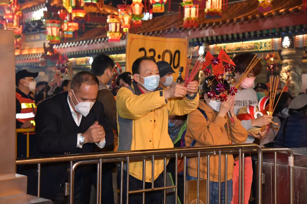 直至晚上11時前夕,「仲有30秒…6、5、4、3、2、1,新年快樂!」各善信迅即在香爐上插香,有人用風車在香燭上撥香,尤如借風送運,亦有人以祭品在香燭上來回順風針圍繞數圈,鐘聲同時在祠廟中響起,「身體健康呀!」新冠疫情過後新一年,成為各人最希望獲得的新年願望。