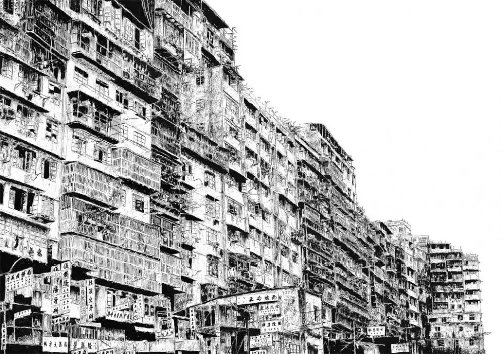 獨愛黑白色調的蘇頌文,畫的內容都圍繞着香港本土情懷。