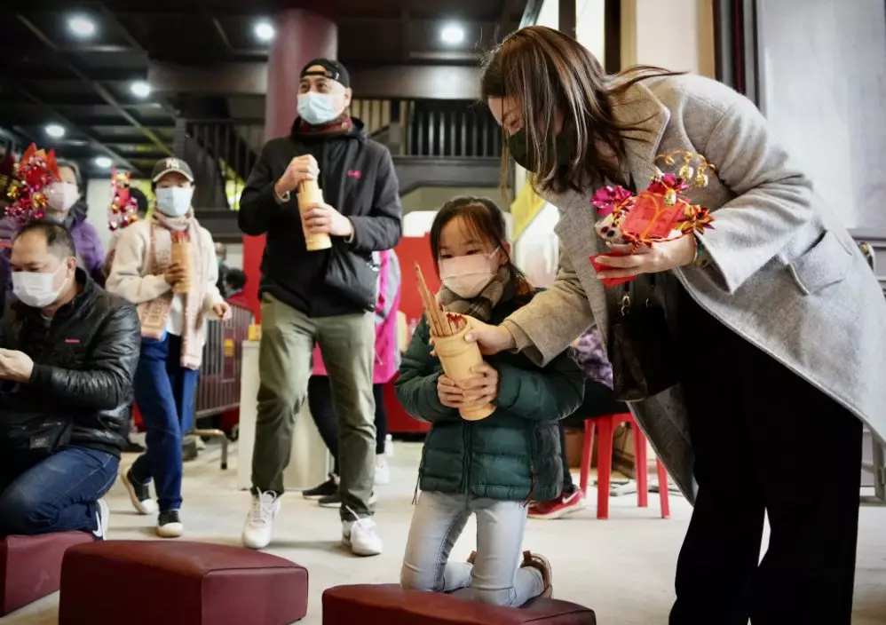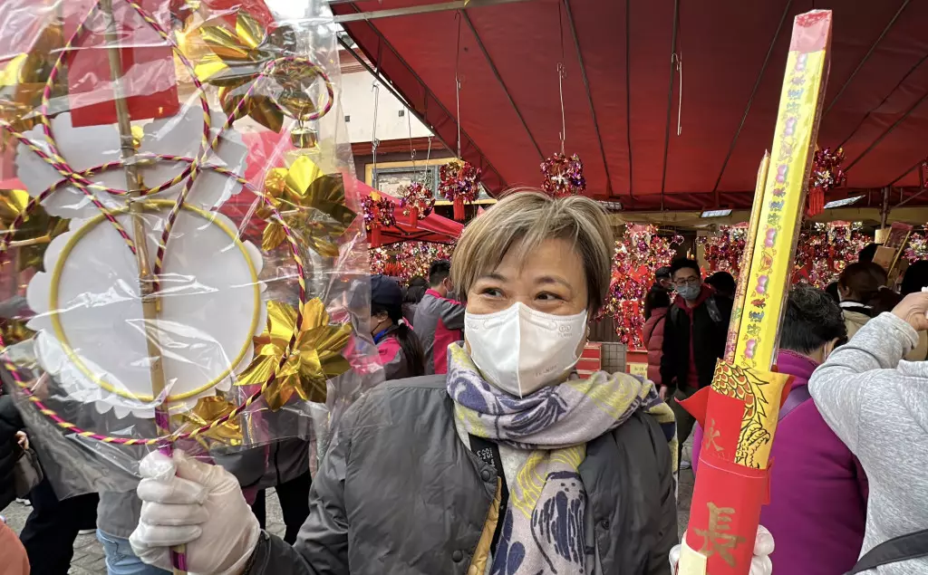 善信方女士帶同小朋友過來參拜車公,小朋友表示這是自己第一次參與「轉風車敲鼓」,7點半起床,很興奮。方女士説這次是疫情後第一次來,氣氛好好,見到這麼多人說明香港正在恢復開心的生活,希望新年全世界疫情退散,國泰民安,生活越來越好,家人平安,小朋友學業進步。