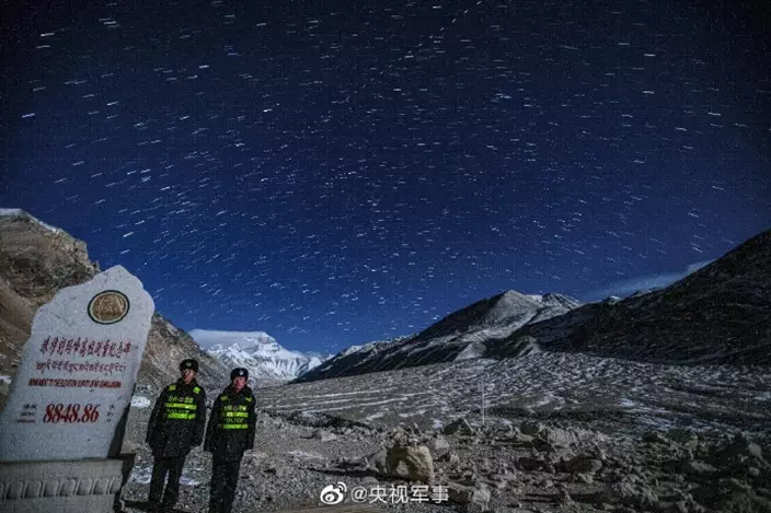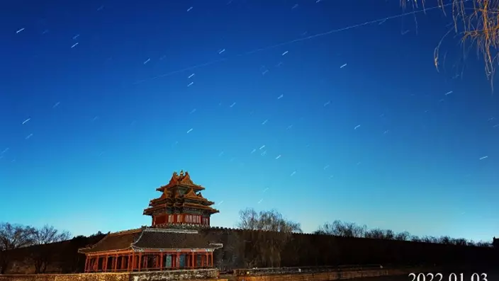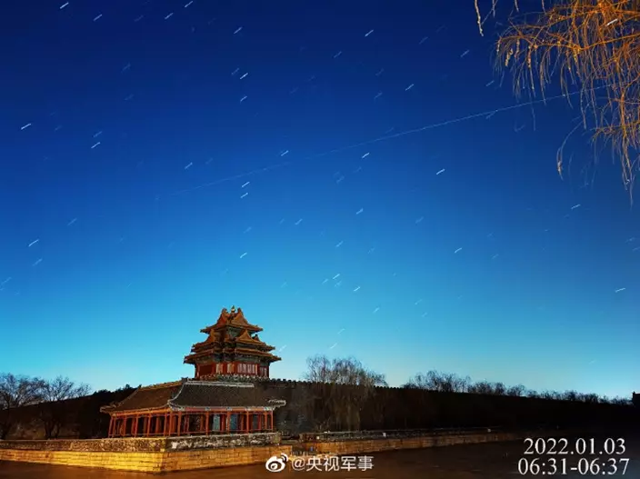 圖中白色線為「天宮」太空站掠過夜空留痕。