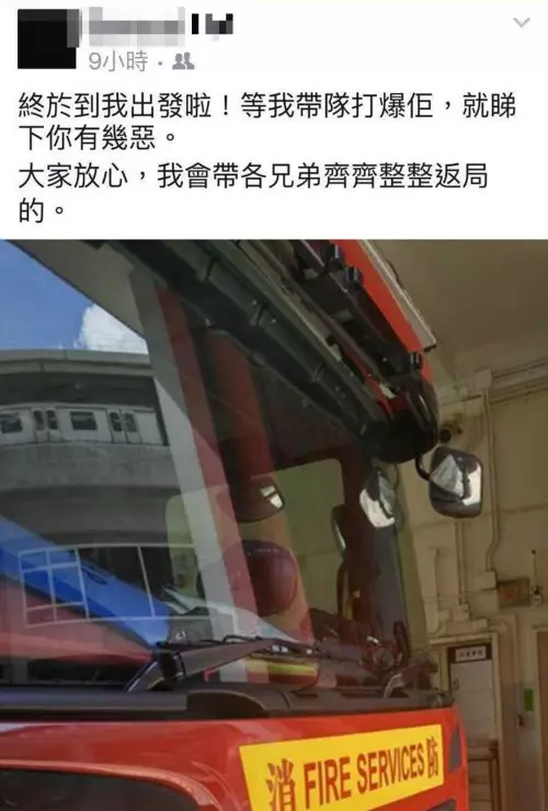 37歲的許志傑出發到火災現場前曾在社交網站上載帖文:facebook發帖,稱「終於到我出發啦!等我帶隊打爆佢,就睇下你有幾惡。大家放心,我會帶各兄弟齊齊整整返局的。」不幸他最終殉職,遺下妻子及七歲兒子。