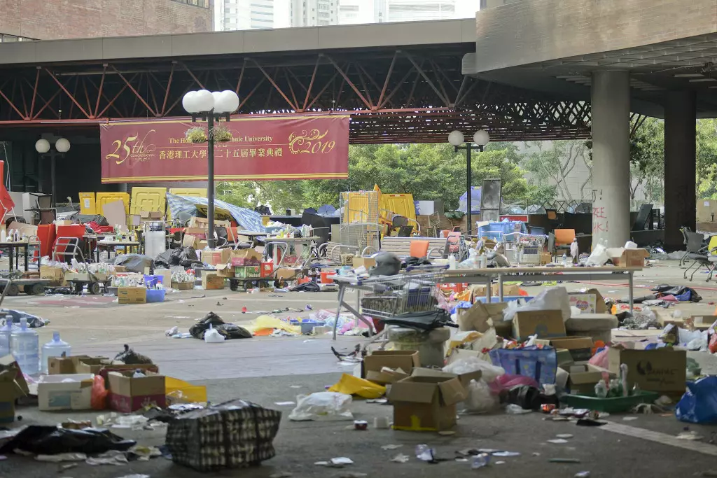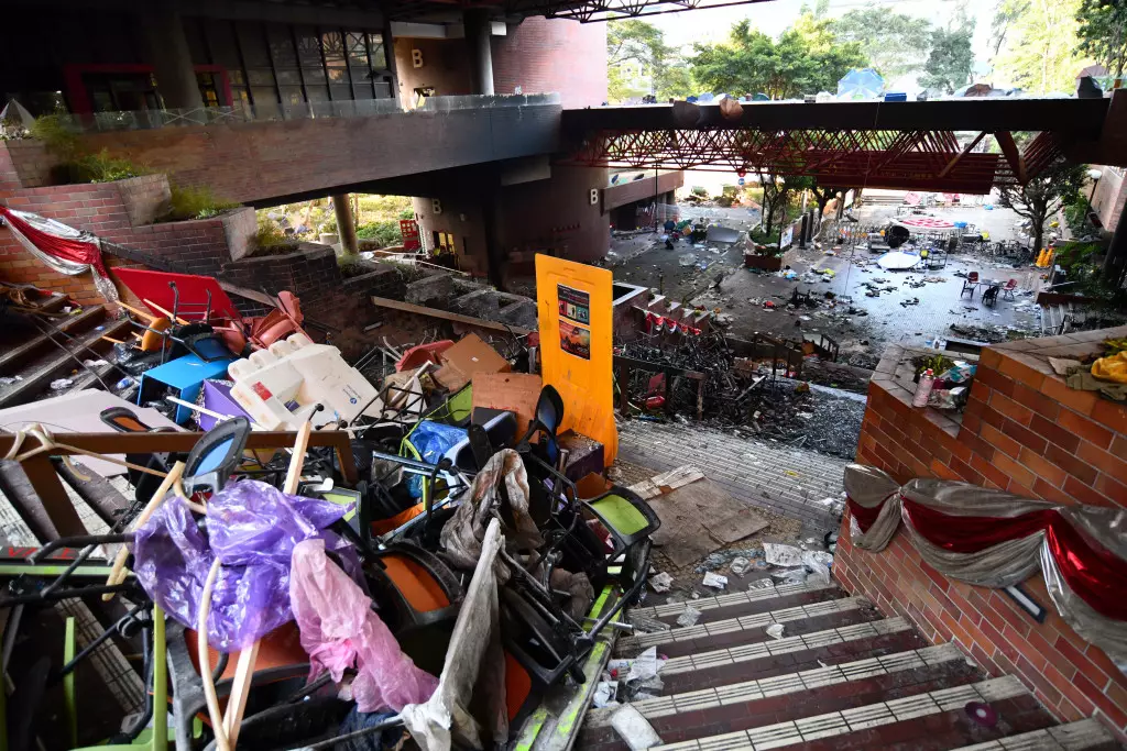 理大被大批示威者佔領,校內一片凌亂。 資料圖片