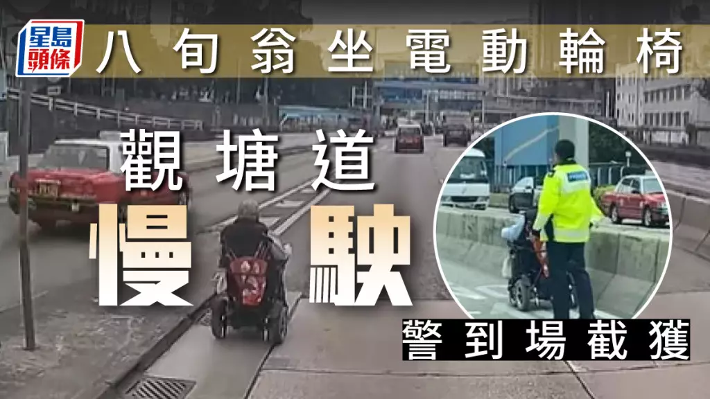 8旬翁坐電動輪椅闖觀塘道險象環生 警接報到場截獲