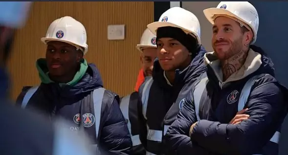 巴黎聖日耳門全體球員周四完成操練後,拉隊到即將落成的新訓練中心參觀。