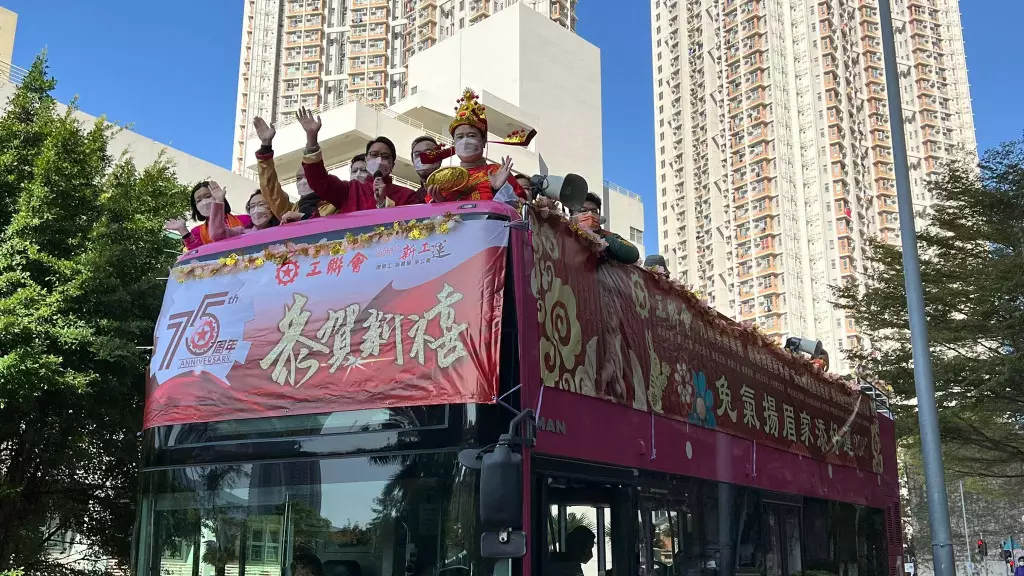 工聯會29日在油塘舉辦新春花車巡遊活動,由立法會議員鄧家彪聯同九龍東工作團隊,巡迴藍田、秀茂坪及觀塘多個地點,向市民拜年兼送上祝福,同時希望財政司司長陳茂波可以派發電子民生消費券,為基層市民雪中送炭。