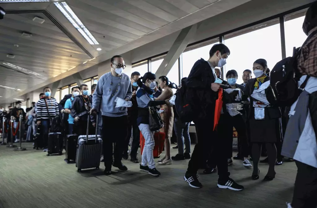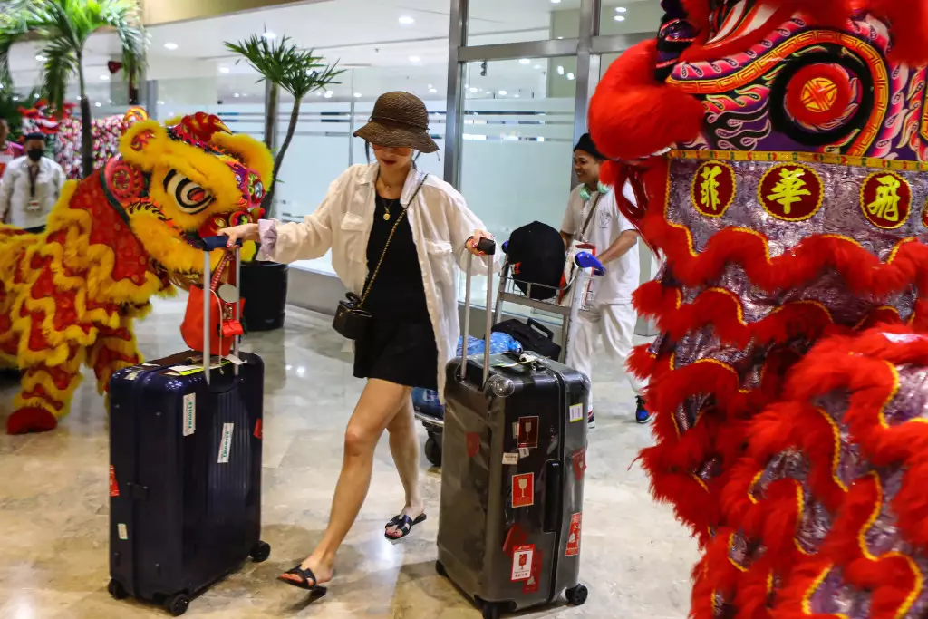 來自廈門的中國遊客在年初三飛抵馬尼拉。 美聯社